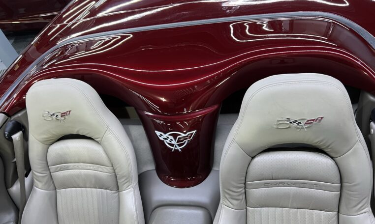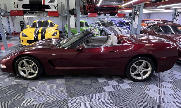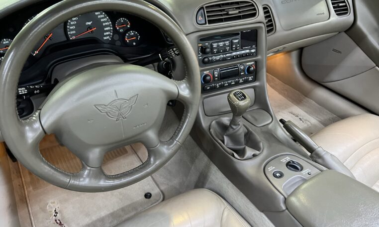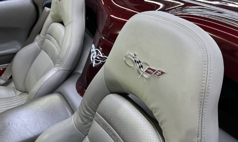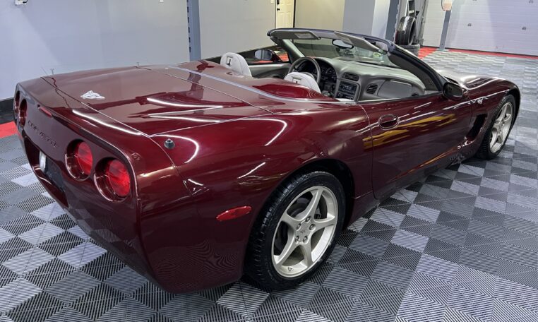 Plus Taxes & LicensingSoldThis 2003 Chevrolet Corvette convertible is a 50th Anniversary Edition built to commemorate 50 years of Corvette production. The car is finished in 50th Anniversary Red over Shale leather and is powered by a 5.7-liter LS1 V8 paired with a six-speed manual transaxle and a limited-slip differential. Equipment includes Magnetic Selective Ride Control, auto-dimming mirrors, power-adjustable seats with driver’s memory settings, a head-up display, automatic headlights, and a power-telescoping steering column. Additional features include cruise control, automatic climate control, alloy wheels, and a Delco CD stereo with Bose speakers. The body is finished in 50th Anniversary Red and features commemorative badging, a tan power-operated soft top, pop-up headlights, integrated fog lights, and quad exhaust tips. Factory 17″ front and 18″ rear Champagne-finished wheels are mounted with 245/45 and 275/40 Goodyear Eagle F1 tires. Equipment includes Magnetic Selective Ride Control, traction control, and speed-sensitive power steering. Braking is handled by four-wheel discs with cross-drilled rotors. The cabin features power-adjustable sport seats upholstered in Shale leather, and the headrests and floor mats are embroidered with “50th Anniversary” logos. Darker tan trim accents the upper door panels, center console, and dashboard. Equipment includes dual-zone automatic climate control, cruise control, a Delco CD stereo with Bose speakers, a head-up display, and a power-telescoping steering column. Under 58k original kms on this beauty.