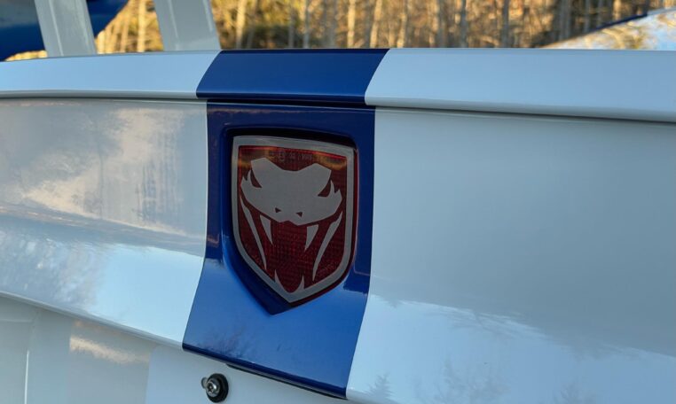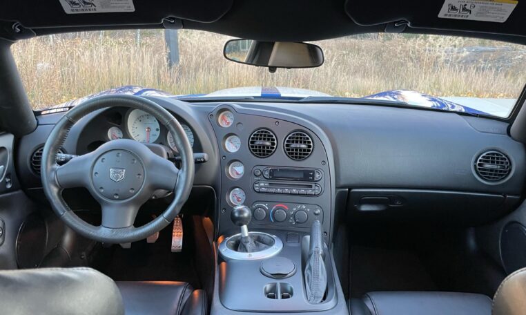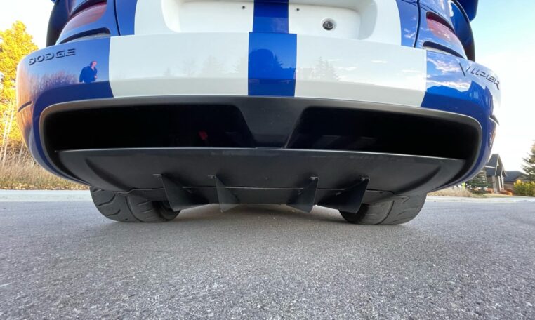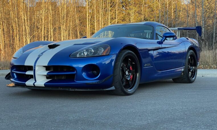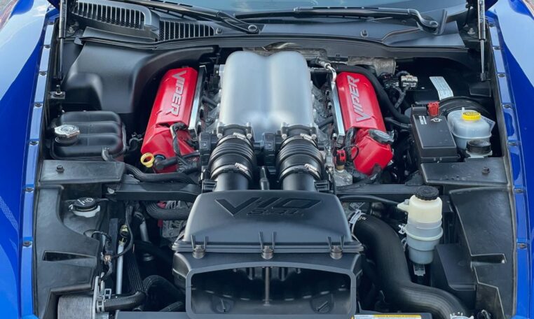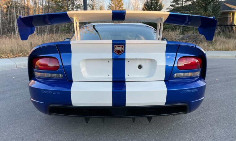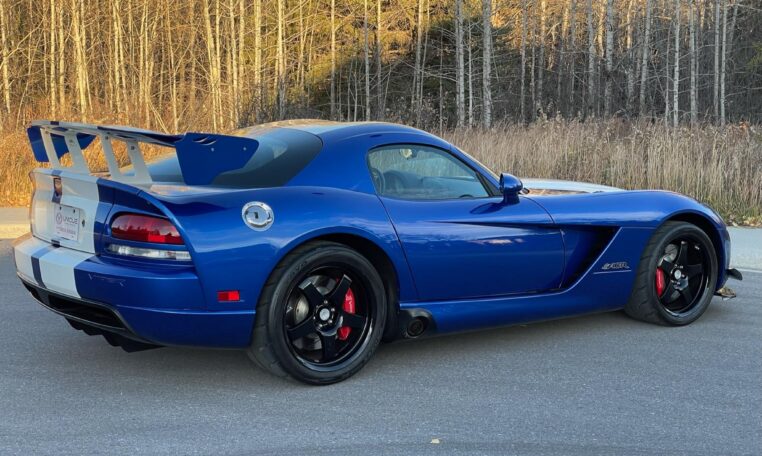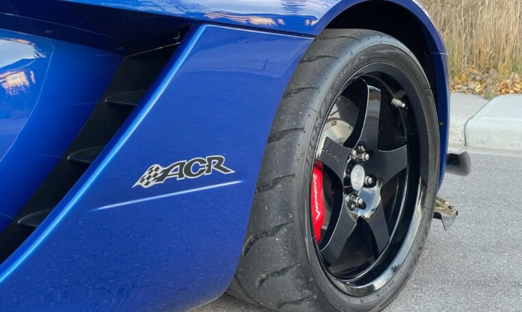 ACR-specific aerodynamics include a high-mounted adjustable rear spoiler along with carbon fiber splitter and dive planes up front. This combination was reported to generate up to 1,000 pounds of downforce at 150 mph. The 8.4-liter V10 is paired with a 6-speed manual gearbox and was factory-rated at 600 horsepower and 560 lb-ft of torque.